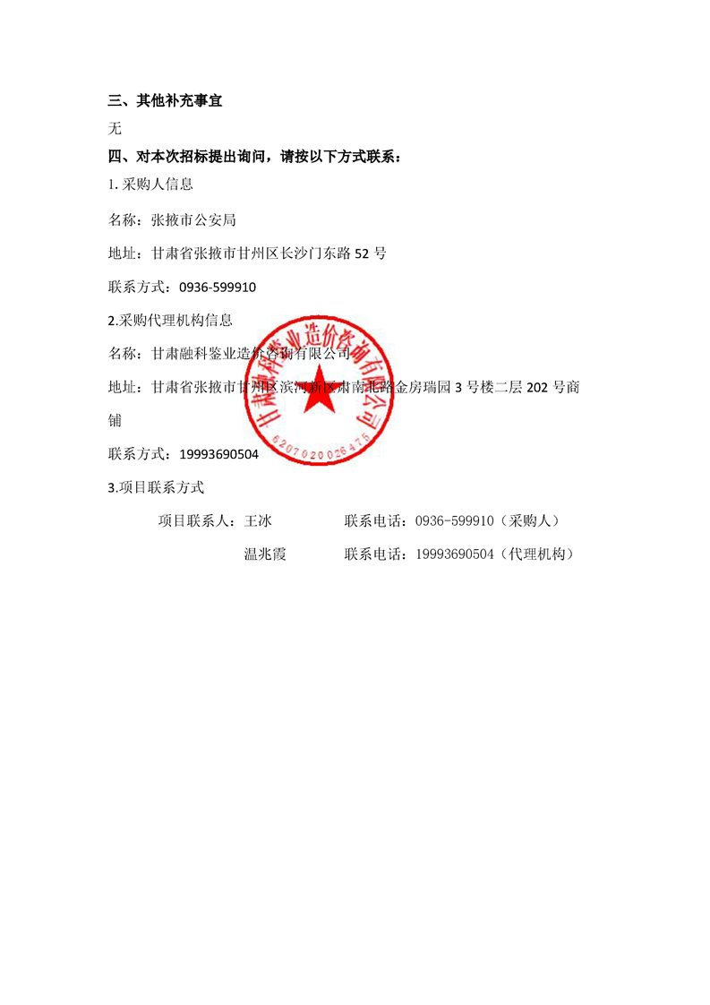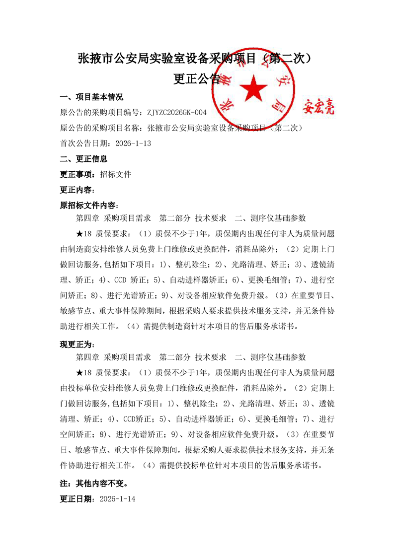 张掖市公安局实验室设备采购项目(第二次)招标公告